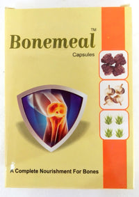 Bonemeal capsules are a rich source of organic calcium and vitamin D3 and offer a highly effective therapy in nourishing the bodyâs performance to promote bone health. Since herbal calcium and natural D3 are easily assimilated into the system Bonemeal capsules work well in its ability to take care of the complete care of bone health. It helps to increase the mobility of the limbs, shoulders and knees. It offers fast healing in the case of traumatic dislocation of the joints and also in the case of various types of fracture. It ensures proper growth of the skeletal system as we age and is also very effective as a natural mineral supplementation for bone loss in menopausal women.