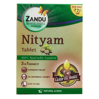 Zandu Nityam Tablet is a unique formulation enriched with 7 powerful Ayurvedic ingredients including castor oil, senna, saunf and triphala. It gently cleanses and soothes the intestinal walls ensuring regular bowel movement and relieves abdominal cramping. It is also effective with associated problems such as gas, acidity and flatulence. Nityam provides relief from chronic constipation aiding in the feeling of lightness within the body.