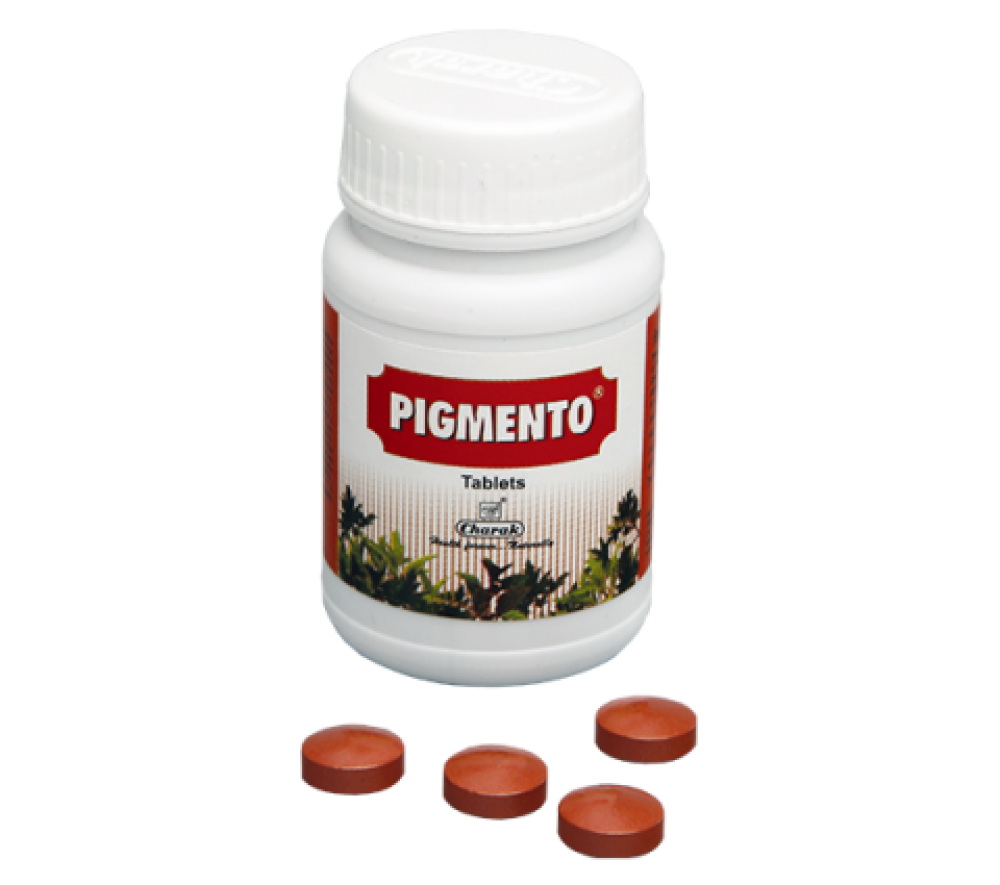 PIGMENTO is a comprehensive therapy in vitiligo. Immunological attack on the melanocytes and free radical damage are considered to be the cause of vitiligo. Psoralea corylifolia, the main ingredient of PIGMENTO, stimulates melanocytes to synthesize melanin, the pigmenting agent. Acorus calamus, Cassia tora and Melia azadirachta have antifungal properties. Tephrosia purpurea modulates both the cell-mediated and the humoral components of the immune system. Other ingredients also have immuno-modulating and antioxidant properties. Thus PIGMENTO effectively induces repigmentation in vitiligo.